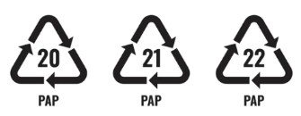 On cardboard boxes, we often see: PAP 20 / PAP 21 / PAP 22. These correspond to different types of paper and paperboard, and are particularly common in the European market.
