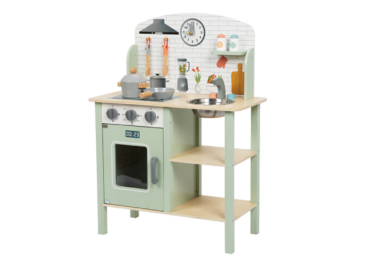 Kitchen Set: Kitchen set toys are designed to simulate real cooking experiences for children. They are typically made from durable and eco-friendly materials like solid wood, MDF, plywood, often coated with non-toxic, water-based paints for safety. These toys commonly include features such as ovens, sinks and storage spaces, along with accessories like pots, pans, utensils and pretending food items.