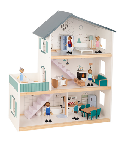 Doll House: A doll house is far more than a simple toy. It is a miniature toy home designed for creative play. It typically has multiple rooms, tiny furniture and often includes small dolls representing a family. Children learn the room layout (bedroom, living room, dinning room, kitchen, washroom), things and activities in different rooms.