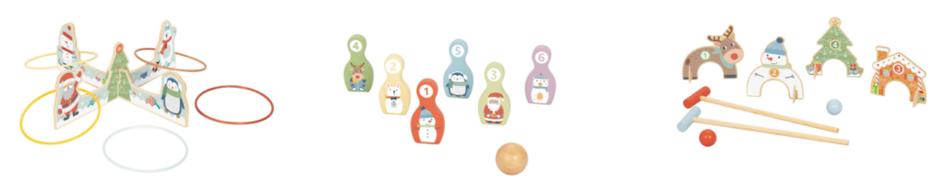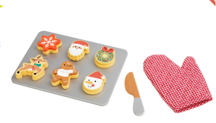 This beautifully designed wooden set allows children to “bake” and decorate their own festive treats. It includes gingerbread people, icing tubes, and baking trays, encouraging imaginative play and fine motor skill development.