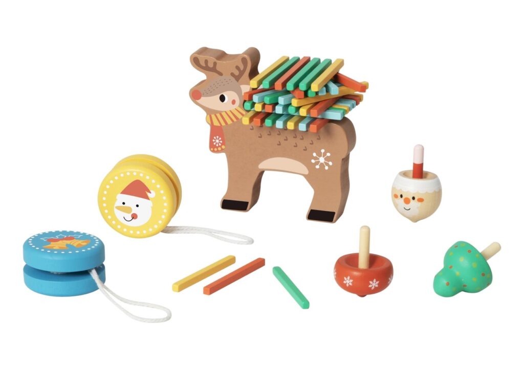 This comprehensive play set includes a spinning top, yo-yo, and reindeer stacking game — all in one beautifully packaged Christmas box. It offers multiple play options that develop coordination, balance, and concentration skills.