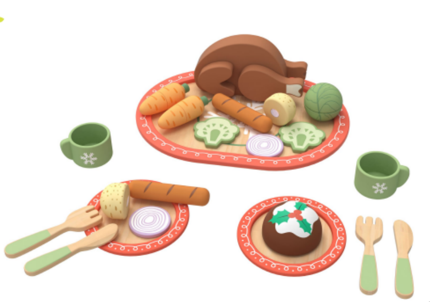 Using dinner-themed wooden sets let children role-play the most joyful part of the season.